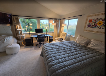 Room 1: available now. room is East-facing with South Bay Area views. Queen bed, desk, chair, TV (wall mounted), 2 closets. Shared bathroom.