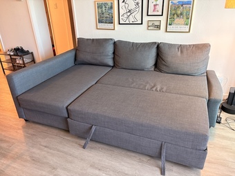 Sectional sleeper sofa with storage - $250 @stanford.eduReply to: Use the form at the right to send messages to this user.Date: Sat, Mar 21, 2026, 06:36 PMPrice: $250IKEA FRIHETEN sleeper sofa sectional (https://www.ikea.com/us/en/p/friheten-sleeper-sectional-3-seat-w-storage-skiftebo-dark-gray-s69216757/) with storage underneath sectional. The chaise part can be moved to the right or left of the sofa. Some damage to the bottom panel of the storage section (pictured). Dimensions included in the web link.please do not message this poster about other commercial services