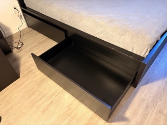 Queen bed frame plus bedroom set - $100 @stanford.eduReply to: Use the form at the right to send messages to this user.Date: Sat, Mar 21, 2026, 06:33 PMPrice: $100Queen bed frame IKEA MALM (https://www.ikea.com/us/en/p/malm-bed-frame-dark-brown-veneer-s09574367/#content) with two rolling drawers underneath and slatted bed base for use without a box spring. IKEA STORKLINTA 4-drawer dresser (https://www.ikea.com/us/en/p/storklinta-4-drawer-dresser-dark-brown-oak-effect-anchor-unlock-function-60559288/#content), missing skinny panel underneath top drawer (pictured). Two IKEA STORKLINTA 2-drawer nightstands (https://www.ikea.com/us/en/p/storklinta-nightstand-dark-brown-oak-effect-with-2-drawers-70559297/), some water damage to the top of one nightstand (pictured). Price includes all items. Dimensions are in the web links. Pickup only but the bed frame can be disassembled prior to pickup for loading.