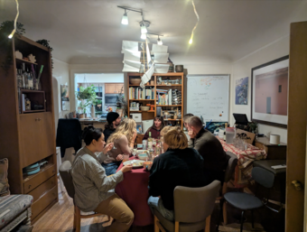 We value building community in and outside of the house, but we also live independent lives. Some nights, the house is dark, and others, you'll find us all spontaneously coalescing around the kitchen table sharing homemade blondies, watching a movie on our living room projector, or playing board games. On balance, the tenor of the community is calm and warm. At the house, we've hosted everything from potlucks to “ballot parties” for researching local issues before voting to craft nights to patio bonfires to parties celebrating the blooming of our jasmine plants. We also love excursions: a hike in the hills and onion rings at Alice's, compost acquisition trips to our local free compost pile or an SF chocolatier (cocoa husk mulch is a wonderful-smelling garden game-changer), spontaneous adventures to pick-up fun free things we find, or scouring secondhand stores.