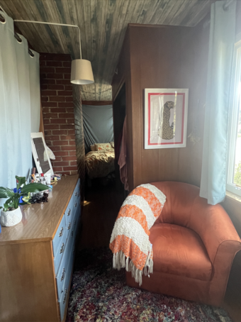Rent for this room is $1,006; utilities include high-speed internet, electricity, gas, and water, and often come to roughly $80 per month. This long and narrow room is fully wood-paneled and has a built-in closet and two windows overlooking our front yard. It may have originally been built as a sunroom, giving it the somewhat funky feature of technically having windows into the house as well as to the outside. For that reason, rent for this room is slightly cheaper than other rooms in the house–but prior residents have really loved the set-up, both for having two distinct sleeping and working areas and for feeling a bit like living in a ship. The room will come furnished with a bed, dresser, and desk; it shares a bathroom with 2 other housemates. This room will be available starting on June 15th, and we will be prioritizing long-term housemates. However, as a house with many academics, we are used to following the cadence of the academic year; we may also be able to accommodate summer sublets or long-term housemates hoping to move in September. Regardless of your specific timeline, we encourage you to fill out the Google form below if you’re interested in joining us at Bubbaland.