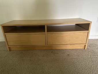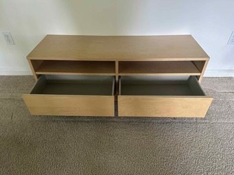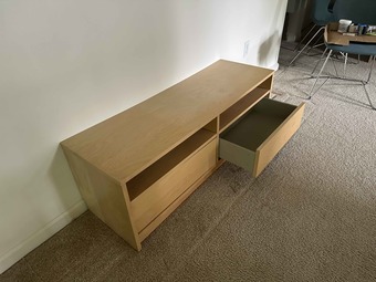 We are moving back to Europe, therefore we are selling our modern wooden TV stand / media console in great condition. Clean, minimalist design with a light natural wood finish that fits well in any living room, family room, kids room, office...