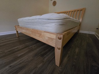 I'm selling a wood queen size bed frame, mattress and two nightstands. The bed is firm, doesn't wip or creak, and is in excellent condition.
