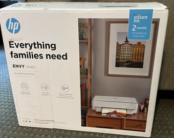 The HP envy 6055 printer is a perfect wireless printer for home. It has all the functionalities needed and can print beautiful photos (will come with cannon photo paper and lots of HP printing paper for free!). It has been well kept and rarely used so looks brand new still.